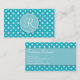 These cute & simple business cards are perfect to hand out at any social or networking event. They feature a blue background with adorable white polka dots. A lighter blue circle sits on top of the background, with room for a monogram in the circle. The back contains room for you to add your name & contact details.