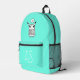 Aquamarine neutral colour backpack with cute anime monster cartoon and cool customisable monogram initials. Perfect for school or college student. Minimalist, cool and sophisticated.