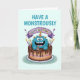 Celebrate birthdays with a fun and whimsical twist. This adorable card features a loveable monster sitting right in the middle of a birthday cake, surrounded by frosting, colourful candles and a gift. With its playful design and cheerful vibe, it’s perfect for kids, teens, or anyone who loves a bit of monster-sized fun on their special day.