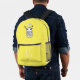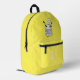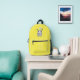 lemon yellow neutral colour backpack with cute anime monster cartoon and cool customisable monogram initials. Perfect for school or college student. Minimalist, cool and sophisticated.