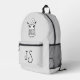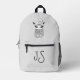Silver Grey neutral colour backpack with cute anime monster cartoon and cool customisable monogram initials. Perfect for school or college student. Minimalist, cool and sophisticated.