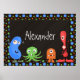 Fully customisable awesome monster gear! Design features deep brown background with brightly coloured blue, green, orange and pink monster figures along with your totally personalised information. It's easy and fun!