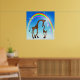 Cute Mother & Baby Giraffe & Rainbow Poster