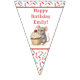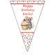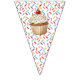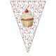 A sweet personalized birthday bunting banner with a cute mouse holding a vanilla cupcake with sprinkles. Add your child's name in the personalize area.