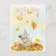 Cute Mouse and Yellow-orange Falling Leaves Postcard
