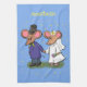 Cute mouse couple cartoon illustration tea towel