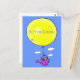 Our cute mouse is on an adventure in a watering can being carried away by a big yellow balloon. lots of mousey, adorable fun for a happy greeting.