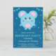 Amaze your guests with this cute birthday party invite featuring an adorable little mouse against a blue background. Simply add your event details on this easy-to-use template to make it a one-of-a-kind invitation. Flip the card over to reveal an elegant pink and white stripes pattern on the back of the card.