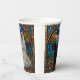 The coaster features a charming stained glass mosaic design of a mouse wedding couple standing under a decorative arch adorned with colorful flowers. The groom, a dapper mouse, wears a tiny black tuxedo with a white bow tie and a small top hat. The bride, a lovely mouse, is dressed in a delicate white wedding gown with a flowing veil, embellished with subtle hints of pastel colors that catch the light beautifully.