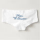 These cute boy shorts are decorated with Mrs. and the bride's new last name in a pretty shade of blue. They make a fun gift for the newlywed or newly engaged girl. Additional wedding panties can be found at https://www.zazzle.com/prettyfancypanties