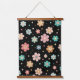 Cute Multicolour Flower Pattern On Black Hanging Tapestry