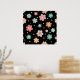 Cute Multicolour Flower Pattern On Black Poster