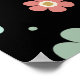 A bright and cheerful pattern of cute flowers and spots in a multicolour palette.