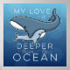 A cute cartoon mother whale embraces her baby calf in the middle of a sparkling blue ocean in this illustration of motherly love. Block and script text surrounding the marine animals reads, “My Love is Deeper Than the Ocean.” This poster makes a lovely new baby gift or a beautiful addition to a nautical themed nursery.