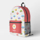 Cute Mushroom Kids Cartoon Personalised Name Backpacks features your personalised name, monogram or initals in a simple script typography on a cute, fun and colourful mushroom cartoon pattern in purple, red, green, yellow and blue. Perfect for kids for back to school, birthday, Christmas and holidays. Designed by ©Evco Studio www.zazzle.com/store/evcostudio