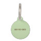 A green pet tag with an illustration of a cute mushroom in cartoon style and customisable text above! Get it for your new pet or to make a gift to a family who welcomes a new animal!