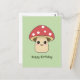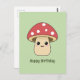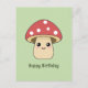 A green birthday postcard with an illustration of a cute mushroom in cartoon style and customisable text below! It could be a perfect to send to a kid, a mycologist, or a friend who loves Kawaii character and nature!
