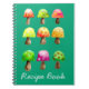 Recipe book with a cute vegetable design of mushroom art. Rainbow coloured mushrooms super whimsical and cute fun playful design with a modern colourful theme. Girly and fun.