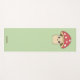 A green yoga mat with an illustration of a cute mushroom in cartoon style and customisable text below! Get it if you are looking for a gift for someone who loves sports and Kawaii characters!