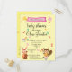 Fun woodland animals are playing musical instruments as brightly coloured musical notes drift upward towards a yellow bird carrying a banner which you use to start your baby shower invitation. This gender-neutral yellow baby shower invitation fronts a postcard with a classic back with your return address and a personal message. We' added the line "We hope you can join us", but it is easy to edit to your own greeting or delete if you prefer to write a note yourself as you address each card. The dividing line between your message and the addressee's area are fun-coloured musical notes echoed on the card front. The invitation, back and front, is simple to edit as you swap your event's information for our placeholders. Just click "personalise" to get started.