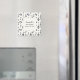 A magnet with a musical themed design. A pattern with treble clef, bass clef and other musical symbols.