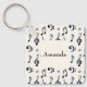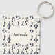 Personalised keychain with a musical themed design. A pattern with treble clef, bass clef and other musical symbols.