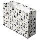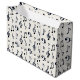 Gift bag with a musical themed design. A pattern with treble clef, bass clef and other musical symbols.