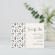Save the date postcard with a musical themed design. A pattern with treble clef, bass clef and other musical symbols.