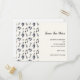 Save the date postcard with a musical themed design. A pattern with treble clef, bass clef and other musical symbols.