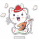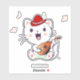 Funny cute musical white kitty cat with mandolin on white background. Ideal for cat lovers.