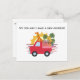 Cute illustration of a dog sitting on a pickup truck with luggage and flowers in it, with the sunset from them, going to a new address. The ideal poster to let friends and family know you've moved. On the back of the postcard you can write your new address and adjust the text to your needs.