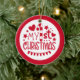 This cute holiday ornament features text image "My 1st Christmas" in red. Back features your child's photo, name and year. Colours can be changed by clicking "Personalise" and "Edit Using Design Tool". Perfect for the holiday season!