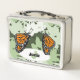 Cute Name Initial Monarch Butterfly Green Metal Lunch Box
