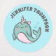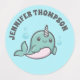 Labels with a cute narwhal illustrations. These designs have fun narwhals on a dotted blue background that can be personalised.