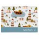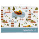 Add a nautical touch to the birthday party or baby shower of your little boy with this adorable custom boat pattern large gift bag. Gift bag has lighthouses, boats, and a place for the text Captain and first name of your kid. Personalised text is on top of a blue background with a white ship anchor.