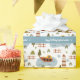 Add a nautical touch to the birthday party or baby shower of your little boy with this adorable custom boat pattern wrapping paper. Gift wrap has lighthouses, boats, and a place for the text Captain and first name of your kid. Personalised text is on top of a blue background with a white ship anchor.
