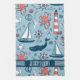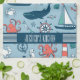 Cute Nautical Pattern Baby Blue Background Tea Towel
