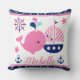 Cute Nautical Pink Whale and Anchors Pattern Cushion