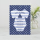 Modern Sailboat nautical it's a boy baby shower invitation featuring a blue and white stripe baby bodysuit with a dark navy blue sailboat set on a blue & white polka dot background. Flip our summer boating invitation over to find a matching back for an extra special touch.