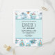 A baby shower postcard with a whimsical pattern featuring whales with fish and lighthouses and other nautical elements.