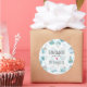 Handmade with love stickers with a whimsical pattern featuring cute smiling whales happily swimming in the sea.