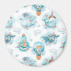A magnet with a whimsical pattern featuring cute smiling whales happily swimming in the sea.