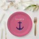 Cute Navy Anchor with Pink White Custom Name Paper Plate