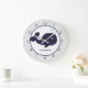 Cute Navy Blue and Grey Whale Nautical Nursery Large Clock