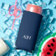 Trendy Seltzer Can Cooler features a dark navy blue background,Add your initials or monogram in bold white text for a look that is simple and cute,