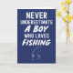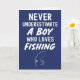 Celebrate the strength and passion of a young angler with this awesome navy blue card, featuring the powerful quote: **"Never Underestimate A Boy Who Loves Fishing."** This **unique** and **themed** design is the perfect way to empower the budding **fisherman**, future angler, or outdoor enthusiast in your life. It’s a heartfelt and **related** present that captures the true spirit of a dedicated young sportsman.
