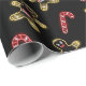 Cute and fun retro bright groovy neon light gingerbread men and candy cane Christmas wrapping paper on a black backgound.