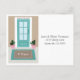 With a door and doormat, personalise this postcard to inform family, friends, and business associates of your new address. The turquoise front door is centred between 2 pink planters, while the brown and turquoise double layered doormats feature the family's name.