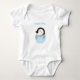 Dressed the newborn little one in this cute baby bodysuit that has the illustration of a little penguin just hatched from a blue stars pattern egg. Personalise with the little one's name. Great for babies born in December or winter.