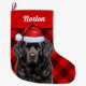 Cute Newfoundland Holiday Buffalo Plaid Custom Large Christmas Stocking